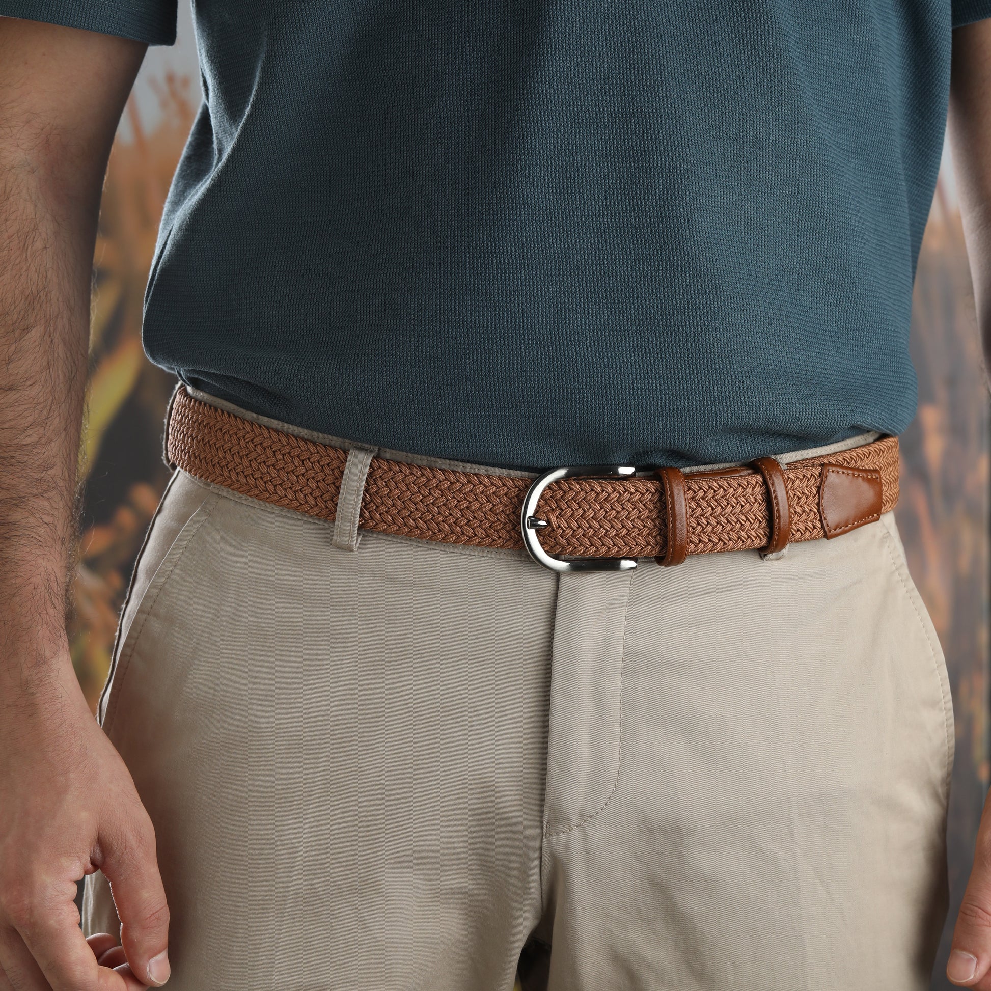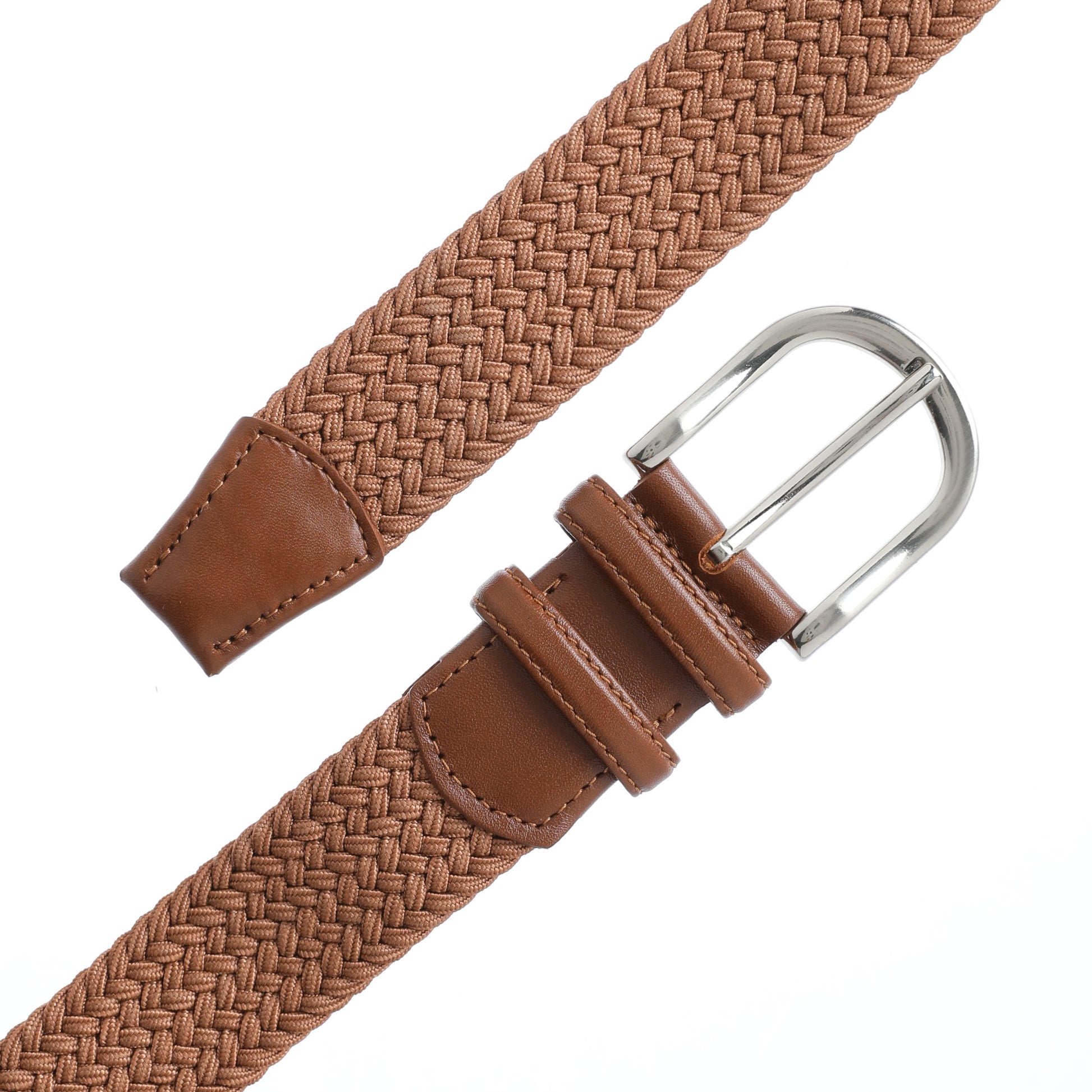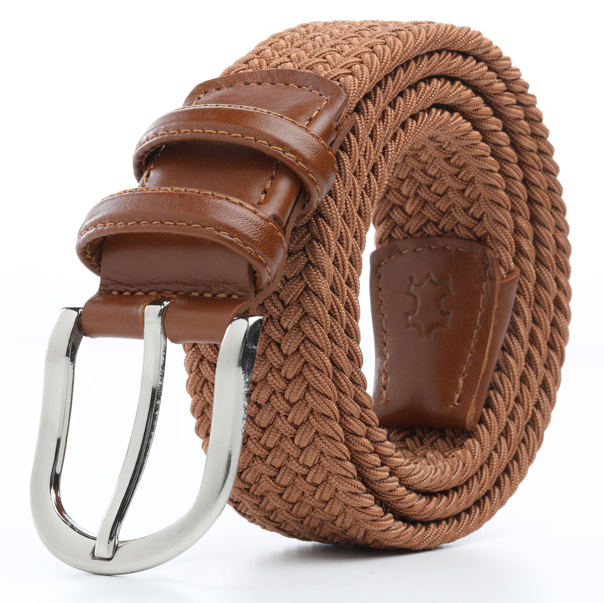 Rahat ve Şık Örgü Erkek Kemeri, Uniseks Kullanıma Uygun Kemer, Hakiki Deri Aksesuarlı Elastik Erkek Kemer, 3.5 cm Genişlik